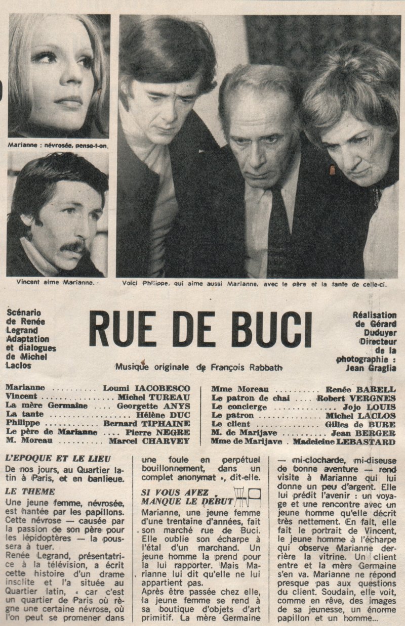 Téléfilm de Gérald DUDUYER "Rue de Buci" 1972