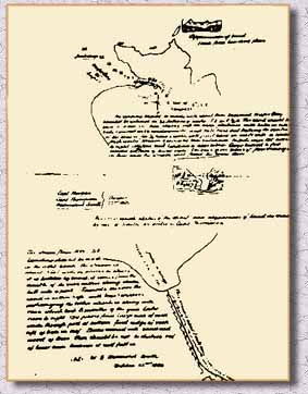 Une carte du trésor dessiné, par Hammond Smith, 22 octobre 1820, par l'ordre de capitaine Thompson.